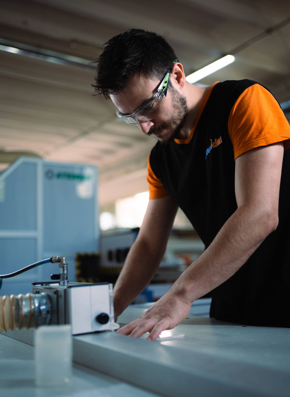 Un team di esperti artigiani: passione e precisione nel taglio laser e lavorazione di plexiglass, legno e metallo.