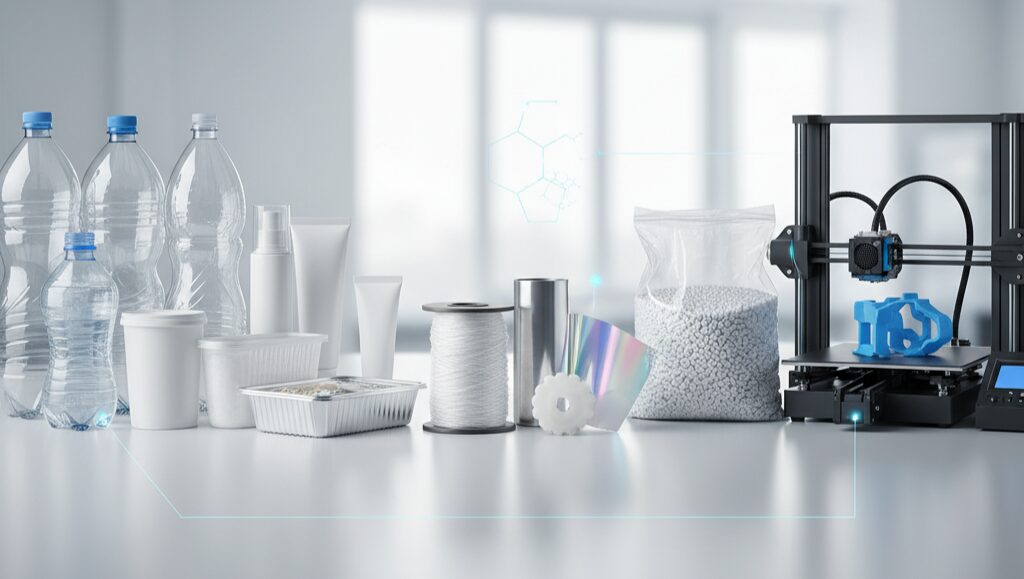 Un’ulteriore area di utilizzo è rappresentata dalla stampa 3D, dove il PET, in forma di filamento, viene scelto per la realizzazione di prototipi e parti funzionali che richiedono un buon compromesso tra resistenza e facilità di stampa.